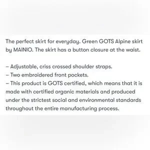 NWT MAINIO Green GOTS Organic 100% Cotton Alpine Skirt Y5/6