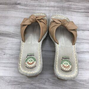 Earth Spirit Liberty Tan Leather Bow Slip On Wedge Sandals Women's Size 8