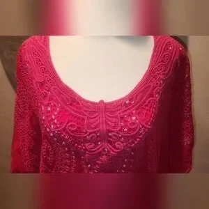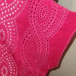 Chic pink dress with exquisite lace detailing. Ideal for days or nights on the town or at the pool.