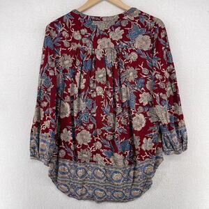 LUCKY BRAND Top Womens L Floral Paisley Boho Henley Long Sleeve Blouse Red
