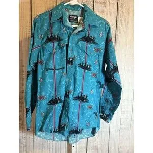 Vintage Wrangler Shirt Button Up Tepee Arrowhead Western Size 15 - 33 Long Sleev