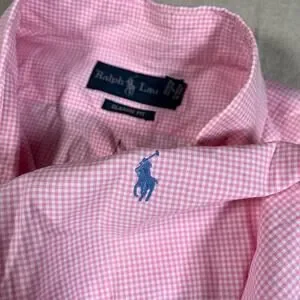 Y2K Polo Ralph Lauren Mens XL Long Sleeve Pink Checkered Button Down