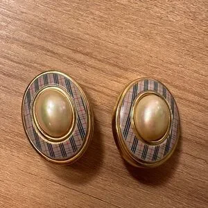 Very rare Burberry’s Nova Check Design Gold Plated Pearl detailed Clip on Earrings