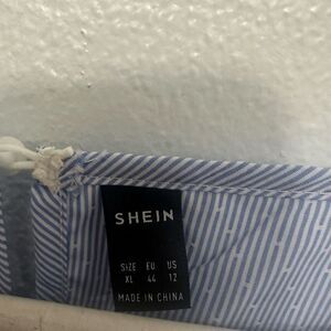Shein puffed sleeves blue and white striped blouse size US 12 XL