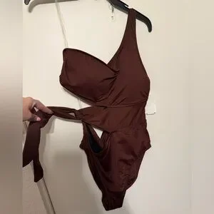 La Blanca Chocolate island goddess brown cut out one shoulder swimsuit 14
