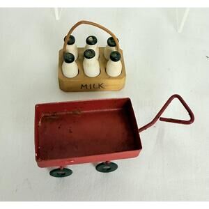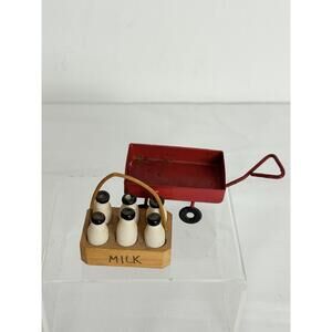Vintage Wooden Milk Basket Miniature Toy Red Wagon