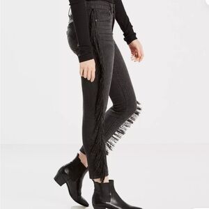 Levi's Limited 721 Fringe-Trim Skinny Ankle Jeans Black womens Size 24