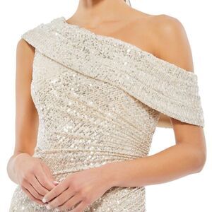 Mac Duggal IEENA One-Shoulder Ruched Sequined Gown. NWT, Size 12