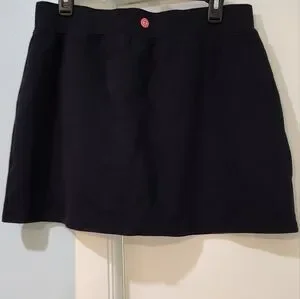 Women's Talbots Navy Skort, Size L. Gently used; Pink and White Stripe with a pocket in the skort. Picture #5 shows a small darker stain towards the bottom left of the skort.