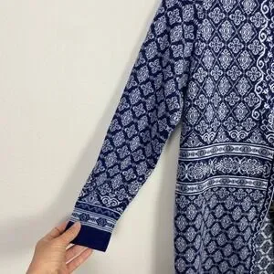 Stay warm in timeless Scandinavian style with this Dale of Norway Ingeborg women's jacket in size XS. Made from 100% premium merino wool, this long sleeve zip-up sweater features a traditional Nordic Fair Isle pattern in blue and white. With a mid-thigh length, it's perfect for layering on chilly days, whether you're heading to the mountains or enjoying cozy winter moments. In excellent used condition—see photos for full details.