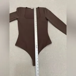 Free People intimately Truth or Square Bodysuit Small Brown Long sleeve Thong