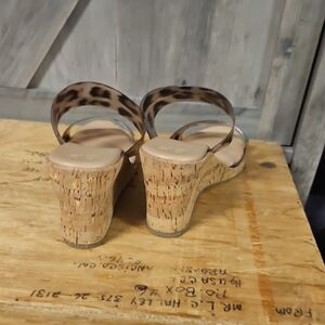 Tan and Brown Leopard Print Sandals with Platform Sole