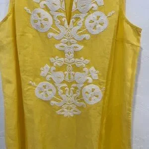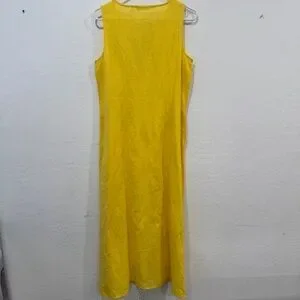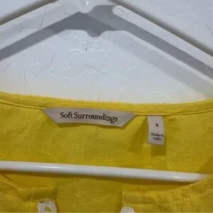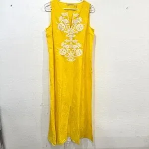 Soft Surroundings Maxi Dress Small Yellow Embroidered Linen Resort Vacation