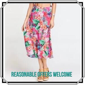 Show Me Your MuMu Flirt Skirt Hawaiian Floral Midi Skirt Size Medium