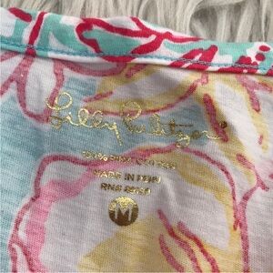 The dress is made from high-quality cotton knit fabric and is machine washable for easy care. The pullover closure adds to the dress's comfort and the button accents give it a touch of elegance. This dress is a must-have for any Lilly Pulitzer fan and is sure to be a favorite for years to come.