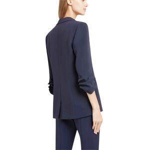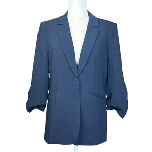 NEW Cinq Ă Sept Crepe Khloe Blazer 8 Navy Ruched Button Sleeve Closet Essential