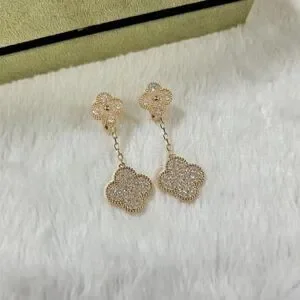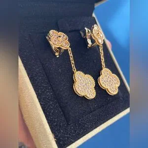 Bring timeless elegance to your jewelry collection with these Lucky Alhambra Clover Drop Earrings, a perfect blend of sophistication and style. Featuring a cascading clover motif adorned with brilliant crystal accents, these earrings are designed to add a luxurious touch to your outfit.