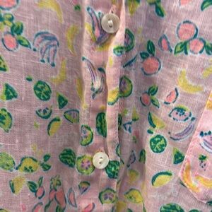 🍌 {XL} LILLY PULITZER Sea View Urchin Pink Lil Juicy Fruit 100% Linen Shirt