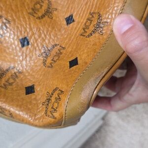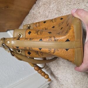 Authentic MCM Visetos Coated Canvas Heritage Drawstring Bucket Bag Cogna…