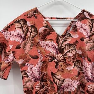 Style: Rockmans Top Women 16 Pink Hawaiian Tropical Linen Blend V Neck Bell Sleeves