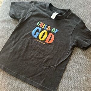 • Black cotton tee with bold, multicolor “CHILD OF GOD” graphic