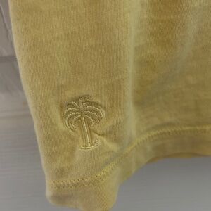 Embroidered palm tree on the lower right hem