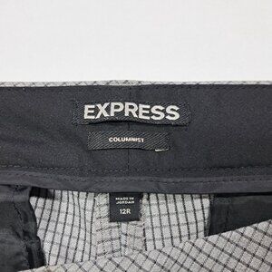 These Express trousers in a sophisticated gray hue feature a flat-front design and a straight leg cut, offering a clean and tailored silhouette. Crafted from a quality woven fabric, they are perfect for business or formal occasions, providing a crisp and professional appearance.