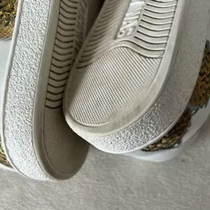Step out in style with these chic white and gold sneakers. Perfect for casual outings, these shoes offer both comfort and elegance.