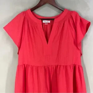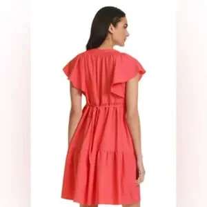 Calvin Klein Women's Flutter Sleeve V-Neck Gauze Dress Size 12 NWT Watermelon