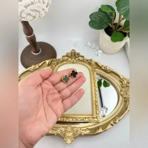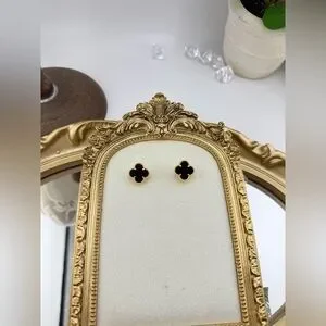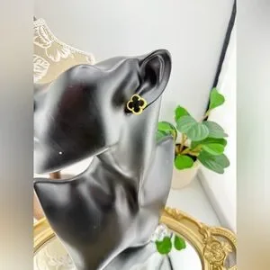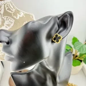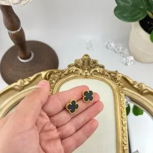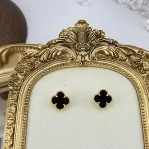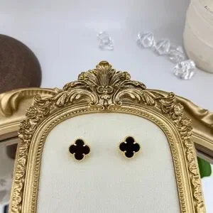Elegant and timeless, these clover-shaped earrings feature a sleek black enamel finish framed in gold-plated sterling silver. Inspired by iconic Alhambra motifs, these studs are the perfect blend of minimalism and luxury. Subtle logo detailing adds a chic designer touch.