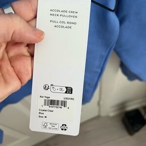 NWT Alo Yoga Accolade Crewneck in Crystal Clear Blue Medium.