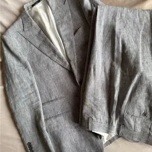 Experience timeless elegance with the Suitsupply Gray Suit, crafted from a textured fabric that exudes sophistication. This classic suit features a blazer with traditional lapels, offering a refined look suitable for both business and semi-formal occasions. The versatile gray color and quality craftsmanship make it a staple in any wardrobe.