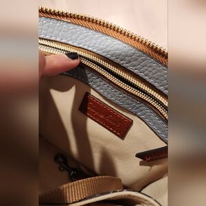 Dooney & Bourke Gray and Brown Crossbody Bag with Pebbled Texture