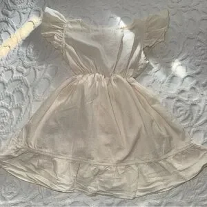 100% Cotton Toddler Girl Traditional Mexican Floral Embroidered Faux Wrap Dress. This charming kids dress features vibrant floral embroidery on a soft cream fabric. Perfect for any occasion.