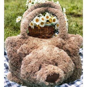 Adorable plush handbag shaped like a bear. Soft and cuddly design. Perfect for adding a playful touch to any outfit.