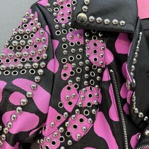 Azalea Wang Faux Leather Jacket Women's S Pink Black Pink Leopard Studded Moto