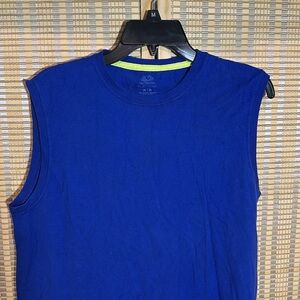 Fruit of the Loom Platinum Bright Blue Tank Top Lime Green Trim Men's Medium
