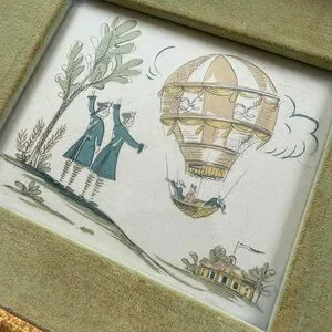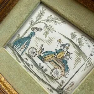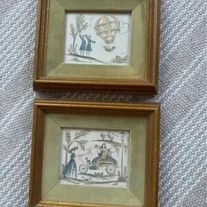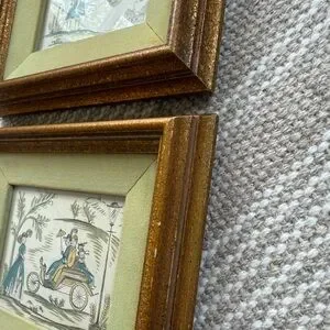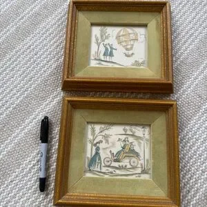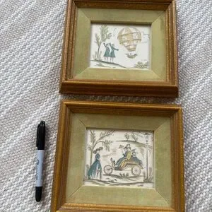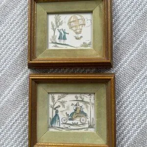 Vintage set of prints. Velvet mat. Some wear on mat and wear on frame as pictured.