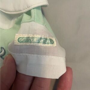 This Vintage Cabbage Patch Kids PREEMIE Doll Clothes Lot from 1982 includes an outfit, dress, blanket, hat, and hangers, all made of cloth material. These original Cabbage Patch Kids items are part of the franchise's product line and are perfect for collectors or fans of vintage Cabbage Patch Kids dolls. The set captures the charm and nostalgia of the 1980s and adds a touch of retro flair to any doll collection.