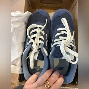 Experience the perfect blend of style and comfort with these New Balance sneakers. Featuring a classic retro design, they boast a navy blue and white color scheme with the iconic 'N' logo. The suede and mesh upper construction ensures a sporty yet casual look, making them ideal for any occasion.
