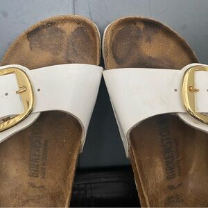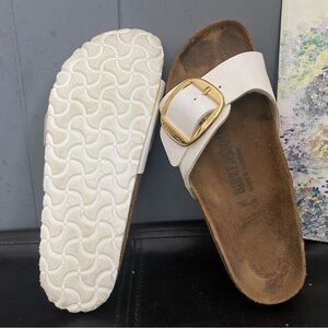 Birkenstock MADRID With Gold BIG BUCKLE Sandal in White Sz 37/6 Women’s