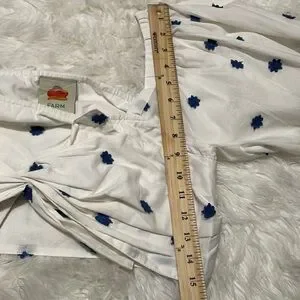 FARM Rio White Puff Sleeve Top with Blue Embroidery
