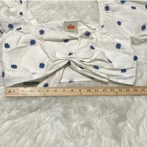 FARM Rio White and Blue Puff Sleeve Crop Top