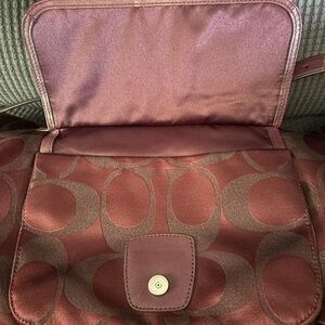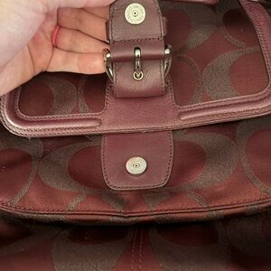 Coach Maroon Shoulder Bag with Structured Design and Metallic Hardware
