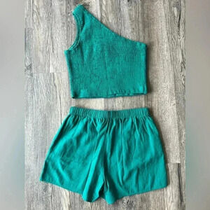 Pretty Garden Set Green Summer Top and Short Set One Size Stretchy Sleeveless