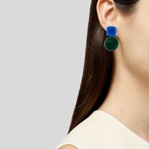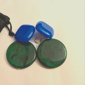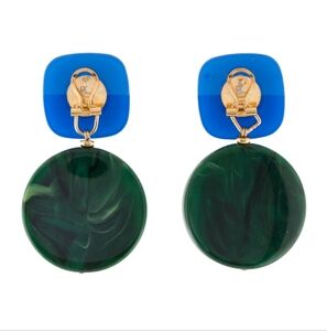 Classic Rachel Comey chunky blue and green acrylic drop earrings. Gold plated. Stamped RC. Excellent condition