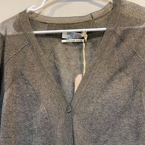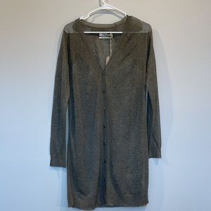 Elegant long cardigan. Button-up front. Soft and comfortable fabric. Perfect for layering.
