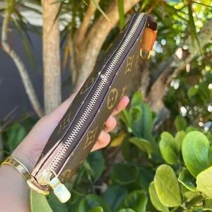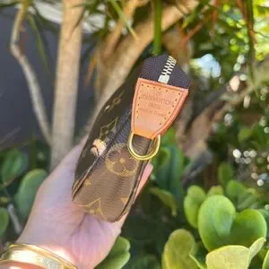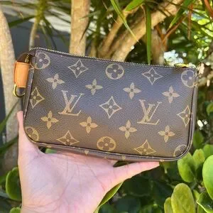 A bit bigger than the regualr mini pochette (BLACK MINI POCHETTE IS NOT INCLUDED) - check out the last photo for size comparison. Also this one wasnt made with a chain.