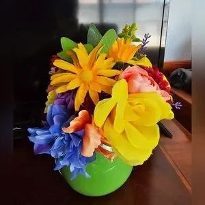 Add a playful touch to your decor with M&M'S faux floral accents in vibrant green and red hues. These delightful accents bring a burst of color and charm to any space, making them a perfect choice for brightening up your home or office. Enjoy the lively and cheerful ambiance they create without the need for maintenance.