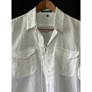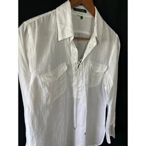 VTG Lauren Ralph Lauren Linen Tunic 1/4 Tie Up L White Classic Preppy Old Money